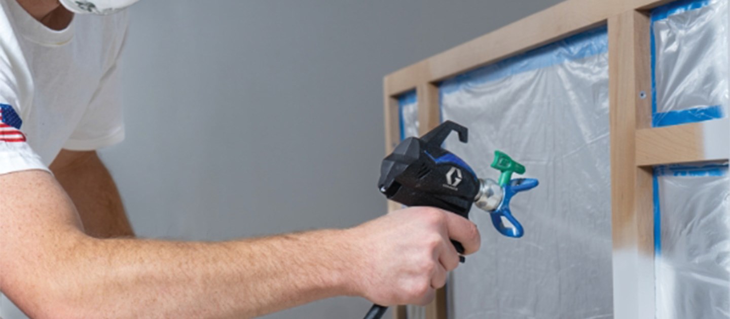 – Graco Ultra QuickShot er revolusjonerende. Dette er en batteridrevet håndholdt malesprøyte med 1,8 meter lang slange, sier Jørn Strøm. Han er salgsingeniør for Graco male- og sparkelsprøyter i J.S. Cock.