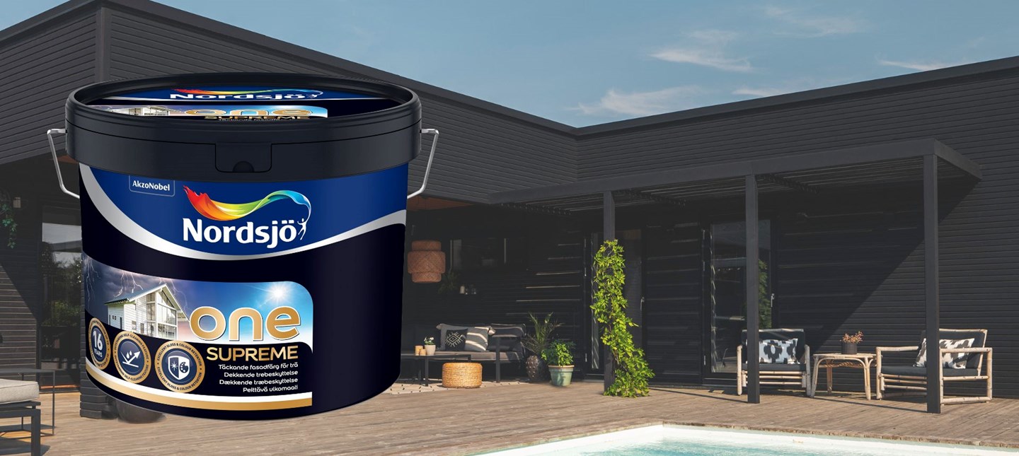 Det nordiske klimaet er spesielt tøft for trefasaden, og dagens huseiere stiller høye krav til det produktet som har til hensikt og både beskytte fasaden og passe på att huset ser nymalt ut i år etter år. Derfor har Nordsjö de seneste årene jobbet intensivt med å utvikle og teste ulike formuleringer. Resultatet er Nordsjö One Supreme, en eksteriørmaling som lever opp til huseiernes høye krav og ønsker.